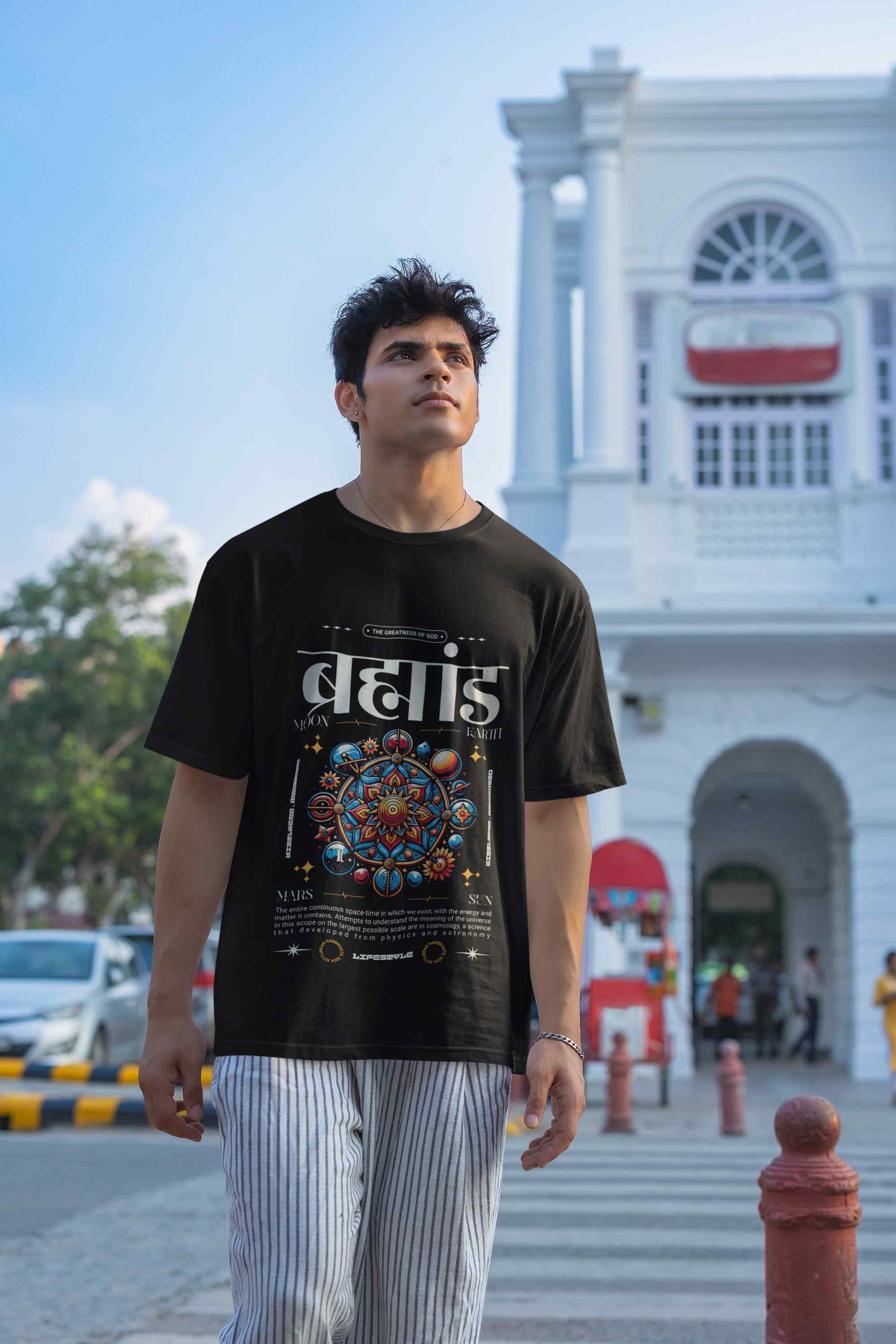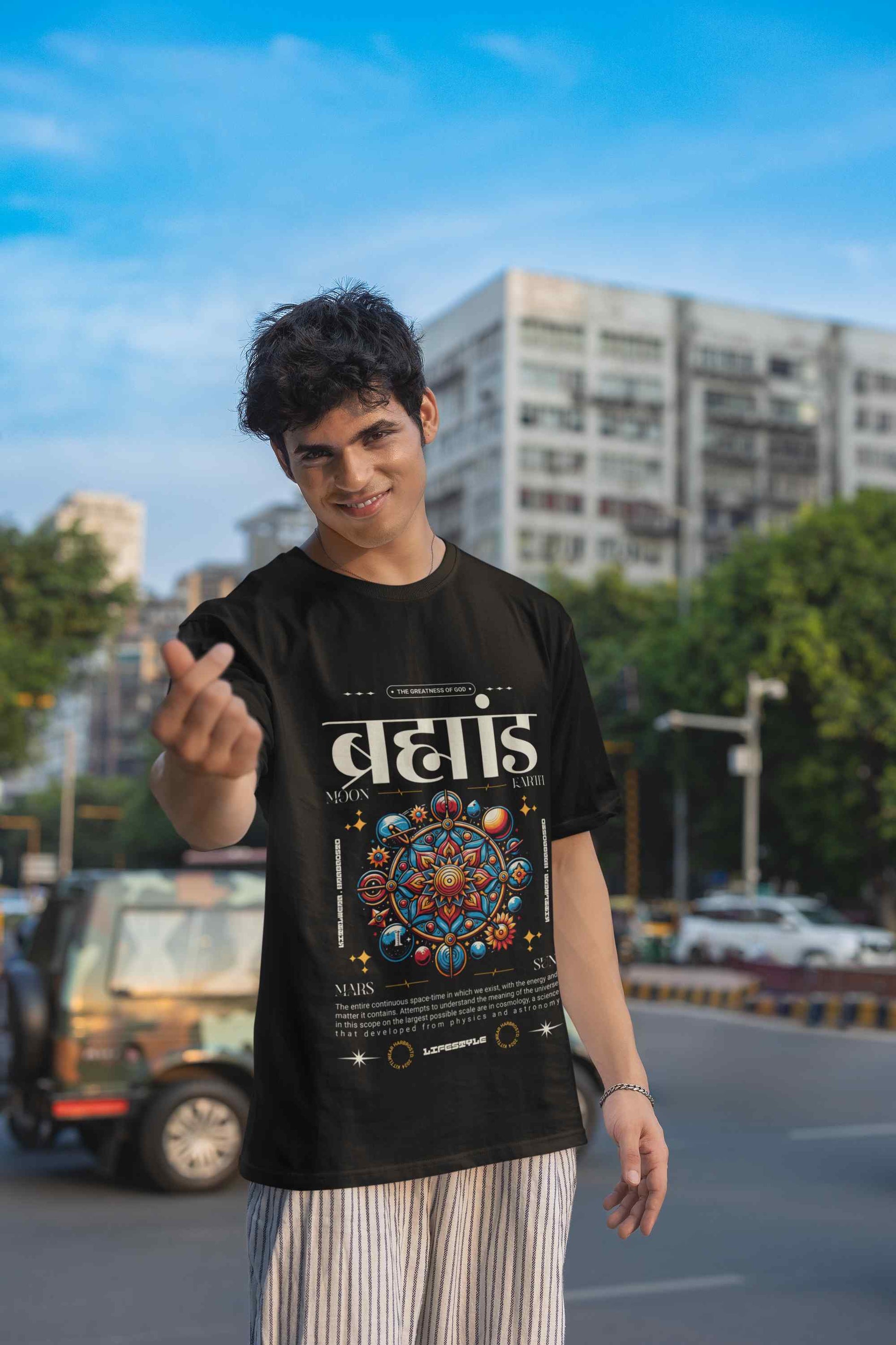 Discover the divine with the Brahman Printed Oversized Top in white. Featuring a deep spiritual print, this tee blends spirituality with fashion for those who seek deeper meaning.