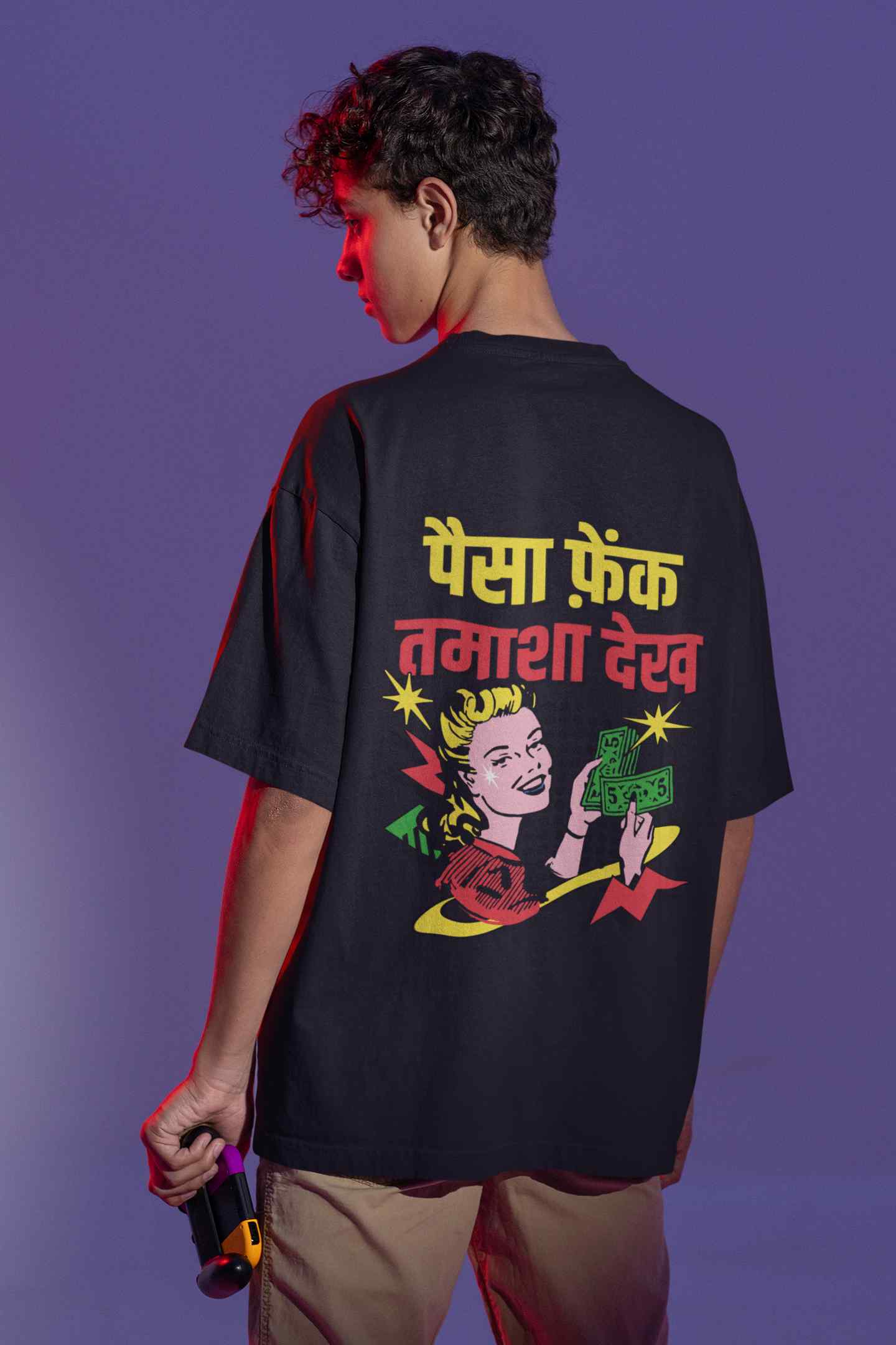Show off your entertainment pride with the Entertainment Backprint Oversized Top in grey. Featuring a large back graphic of classic entertainment icons, this oversized top brings style and nostalgia together for an unforgettable look.
