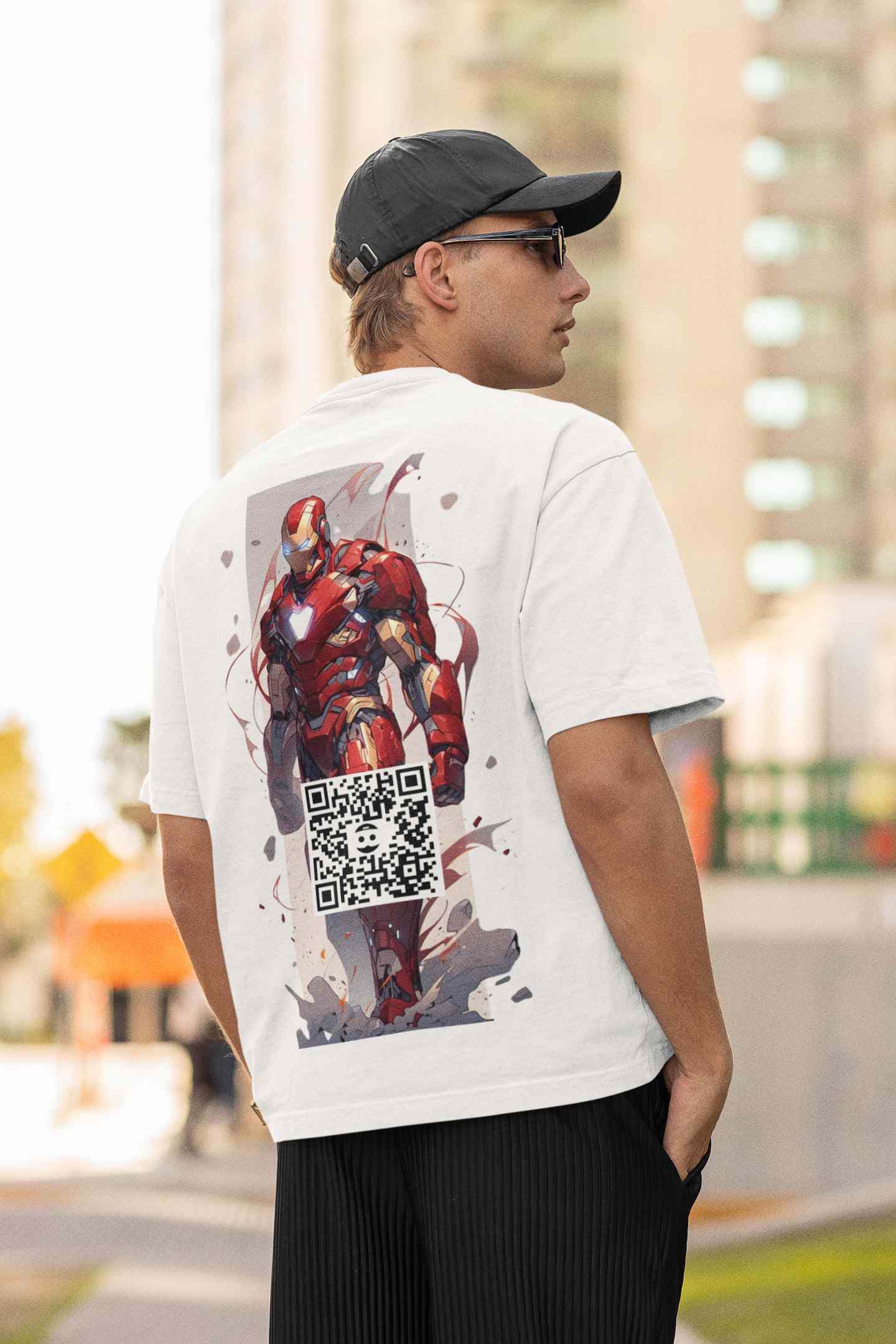 Step into the Marvel universe with the Ironman AR Oversized T-shirt in classic white. This pure cotton t-shirt combines style and technology, featuring augmented reality (AR) elements that bring your favorite superhero to life. With a comfortable oversized fit, regular length, and bold graphic print, this round-neck t-shirt is perfect for casual outings or making a fashion statement. Whether you're an Ironman fan or a lover of cutting-edge digital wearables, this printed t-shirt is your ultimate wardrobe upgrade.