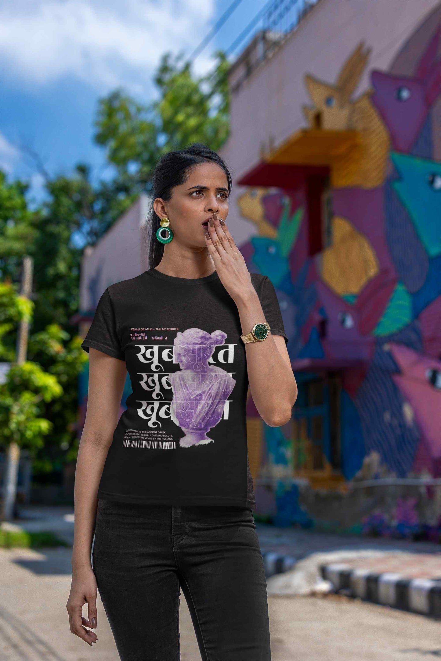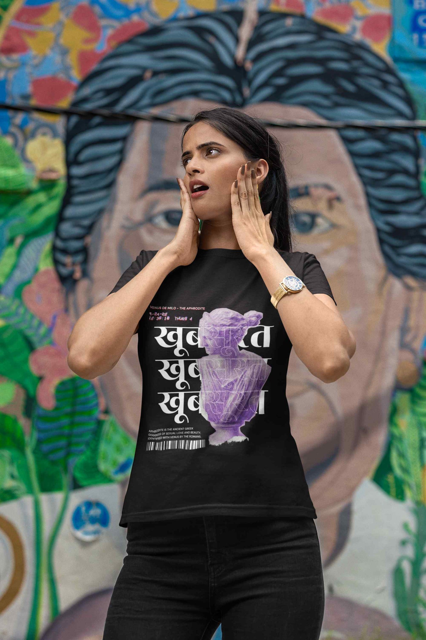 Charm your everyday look with our statement- Khubsoorat Printed Top. Celebrate the essence of Indian culture with Mayavarta's Desi Deals collection. Our fun and vibrant designs capture the spirit of India, perfect for those who love to showcase their heritage. Explore our unique and playful clothing that adds a touch of desi charm to your wardrobe.