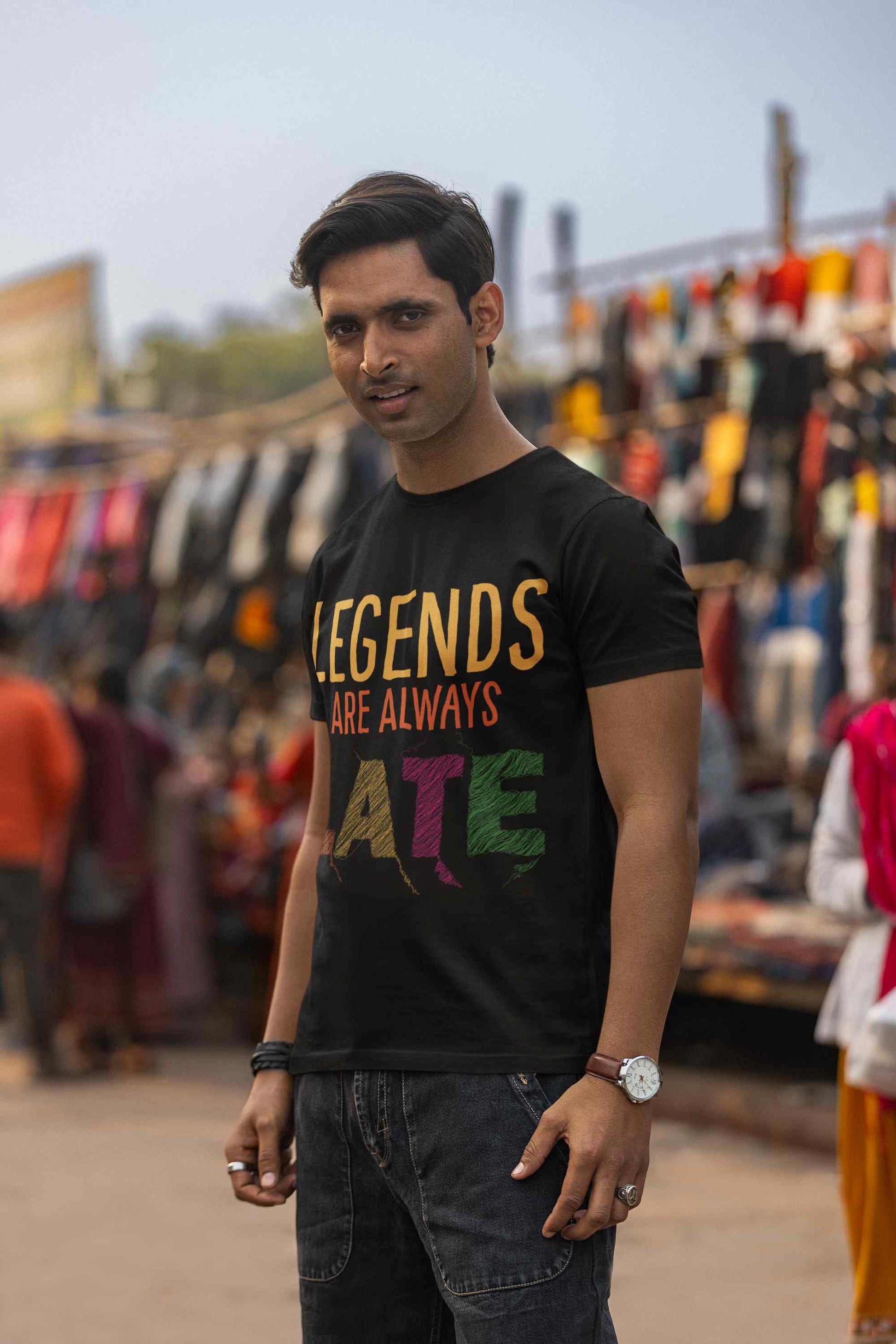 Upgrade your wardrobe with our Legends Printed T Shirt. Celebrate the essence of Indian culture with Mayavarta's Desi Deals collection. Our fun and vibrant designs capture the spirit of India, perfect for those who love to showcase their heritage. Explore our unique and playful clothing that adds a touch of desi charm to your wardrobe.