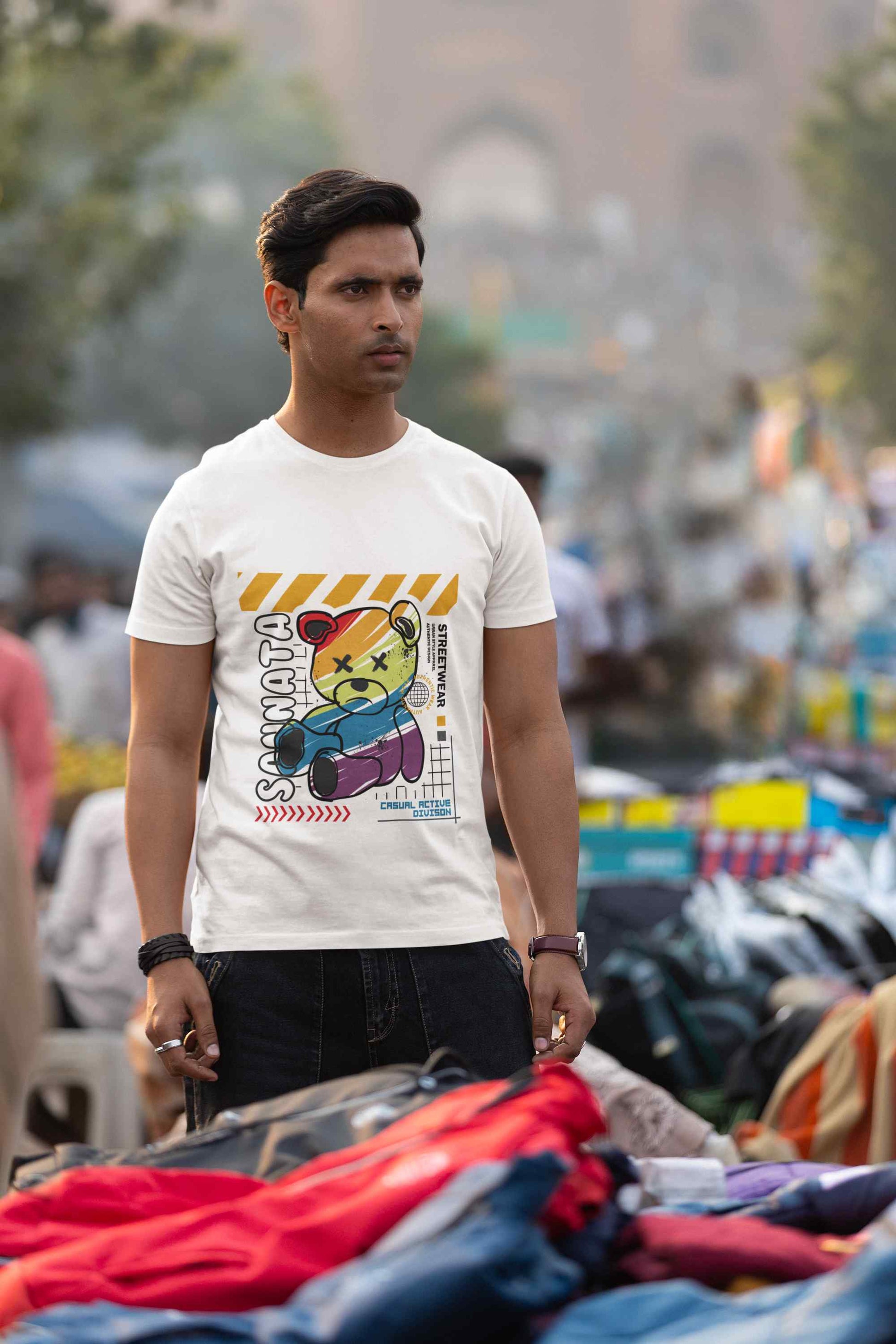 Upgrade your wardrobe with our Retro Printed Tee. Celebrate the essence of Indian culture with Mayavarta's Desi Deals collection. Our fun and vibrant designs capture the spirit of India, perfect for those who love to showcase their heritage. Explore our unique and playful clothing that adds a touch of desi charm to your wardrobe.