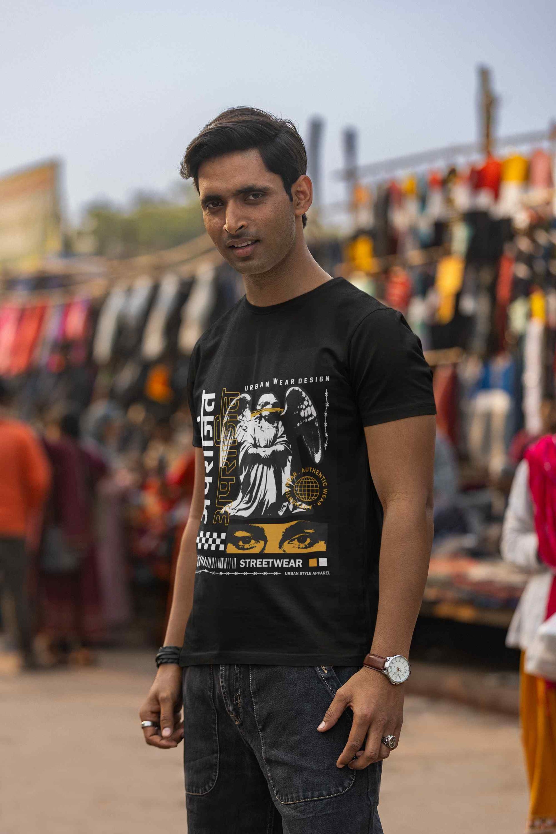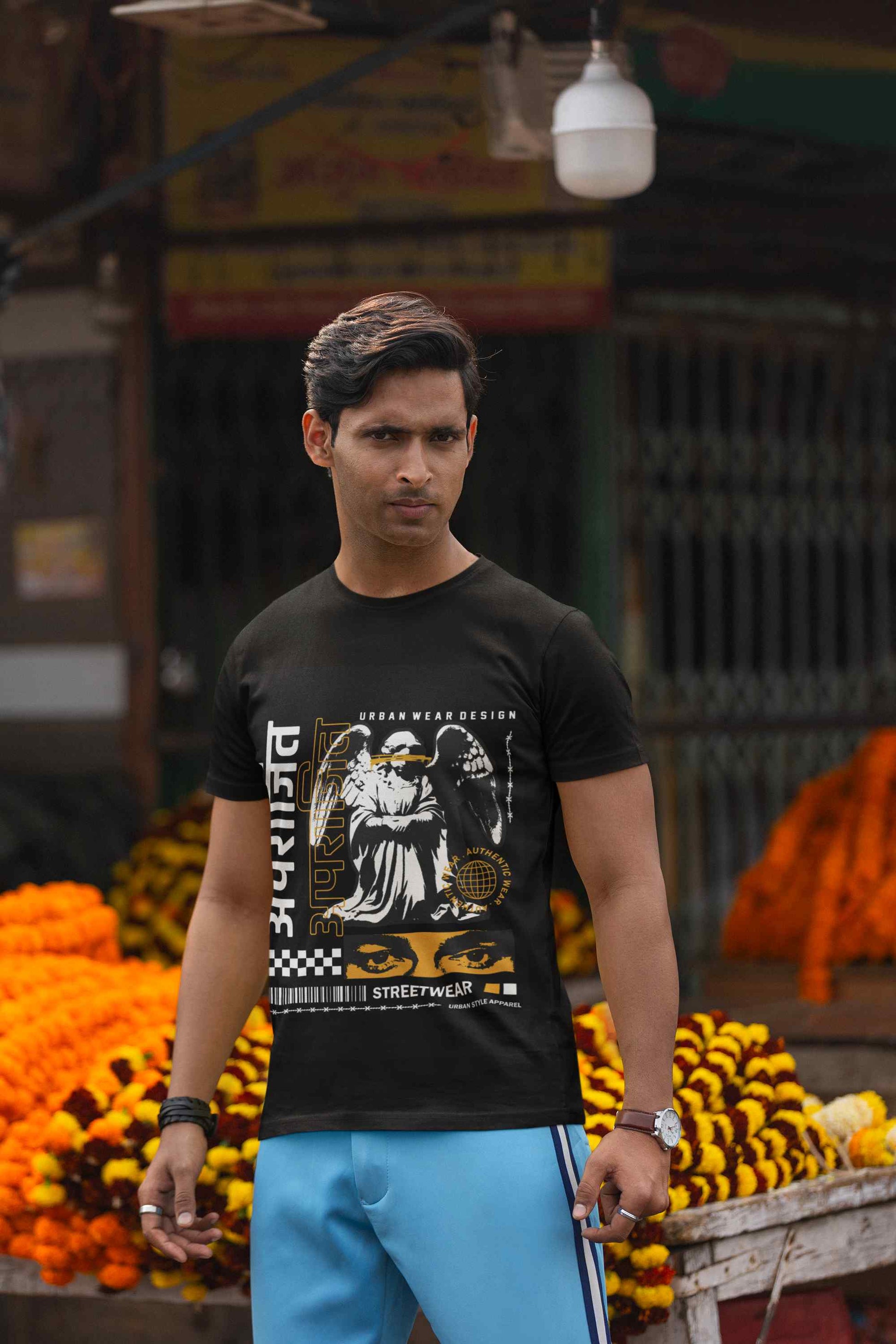 Upgrade your wardrobe with our Streetwear Printed T Shirt. Celebrate the essence of Indian culture with Mayavarta's Desi Deals collection. Our fun and vibrant designs capture the spirit of India, perfect for those who love to showcase their heritage. Explore our unique and playful clothing that adds a touch of desi charm to your wardrobe.