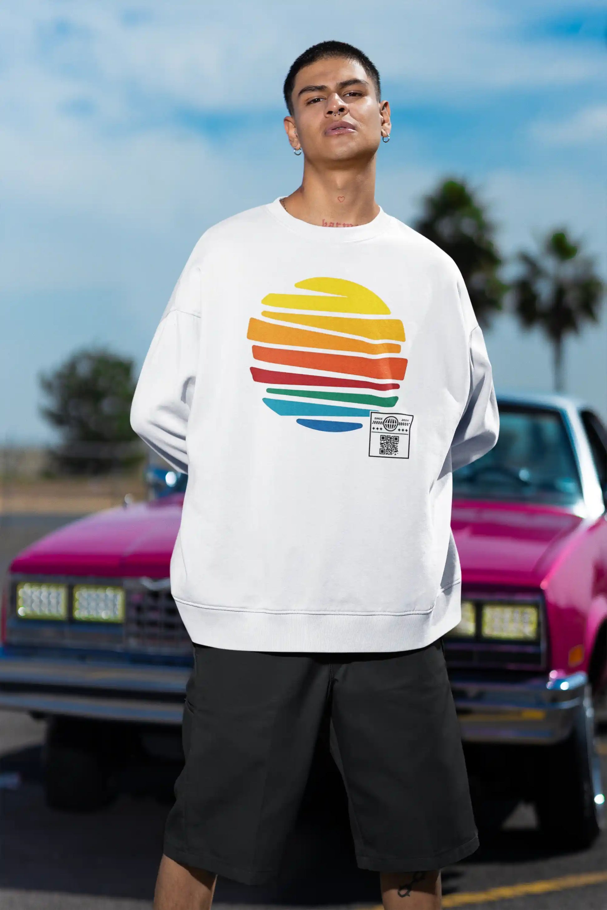 Embrace bold color patterns with the vibrant spectrum stripes oversized tee, designed for a fresh, modern look.