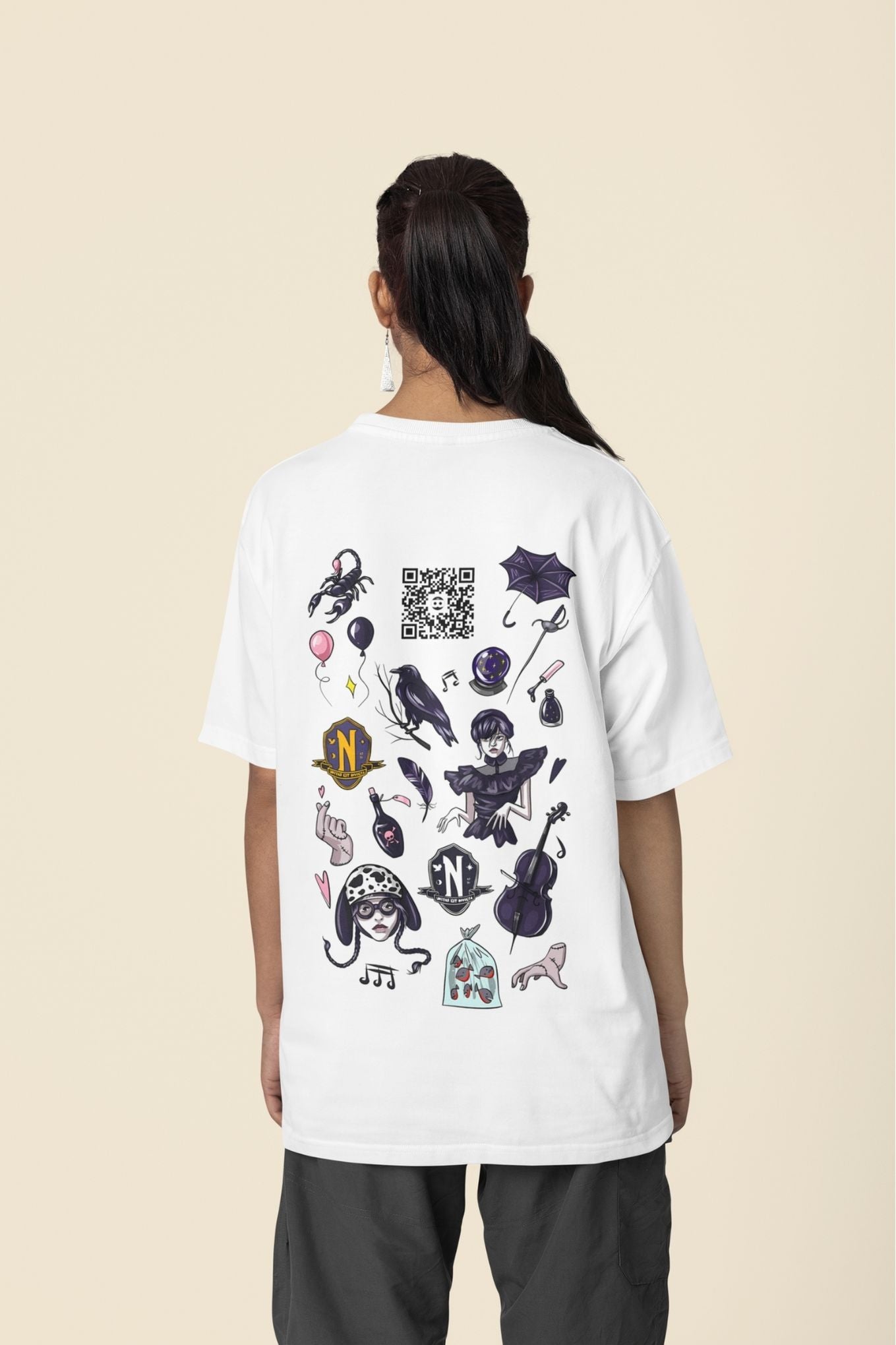 Celebrate the hit series with our Wednesday Netflix Series AR Tee. Scan and watch the scenes come alive in AR. Ideal for series fans and trendy streetwear enthusiasts. Enter a new dimension of style with Mayavarta's Portal AR clothing collection. Our print-based designs activate immersive portal-based AR effects, transporting you to extraordinary worlds with a simple scan. Experience the ultimate blend of fashion and technology, and transform your wardrobe with our innovative Portal AR clothing.